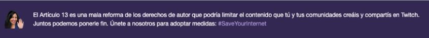 PornHub y Twitch también han demostrado su rechazo incluyendo banners de protesta en su web principal. Bajo el hashtag de #SaveYourInternet buscan explicar un poco como esta ley puede afectarlos a ellos y a sus usuarios.