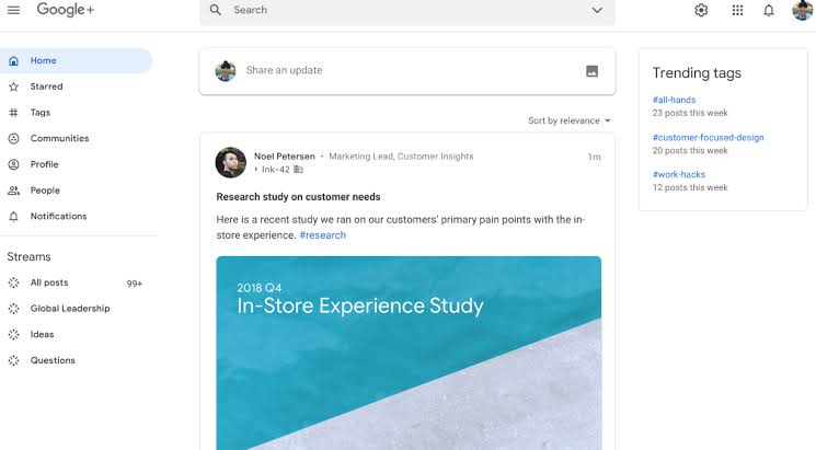 Google+ fue la cuarta incursión de Google en las redes sociales, pero sin duda es la más conocida, aunque no precisamente por sus logros. Esta plataforma lanzada en 2011 reemplazó a Google Buzz, y se plantó ante gigantes como Facebook y Twitter. Sin embargo, estas empresas ya estaban constituidas completamente, y su éxito era rotundo en decenas de países. Por eso, Google presenció nuevamente una increíble escasez de usuarios, y las fallas de diseño también eran notables. Tras años de intentos y grandes cambios, Google+ cerró sus puertas en Abril del 2019, aunque algunas de sus características aún están disponibles en forma limitada.