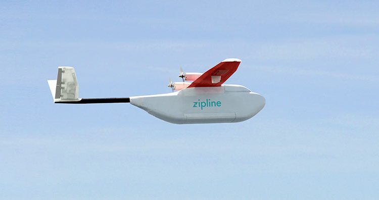 Pero un acuerdo del Ministerio de Salud con la empresa Zipline pretende poner remedio a eso usando drones para hacer el reparto en esos casos. El nombre de este drone es Zip y es capaz de transportar paquetes de 1 kilo y medio aproximadamente a 100 kilómetros por hora. El trayecto máximo que puede alcanzar este drone en un solo viaje es de 120 kilómetros.