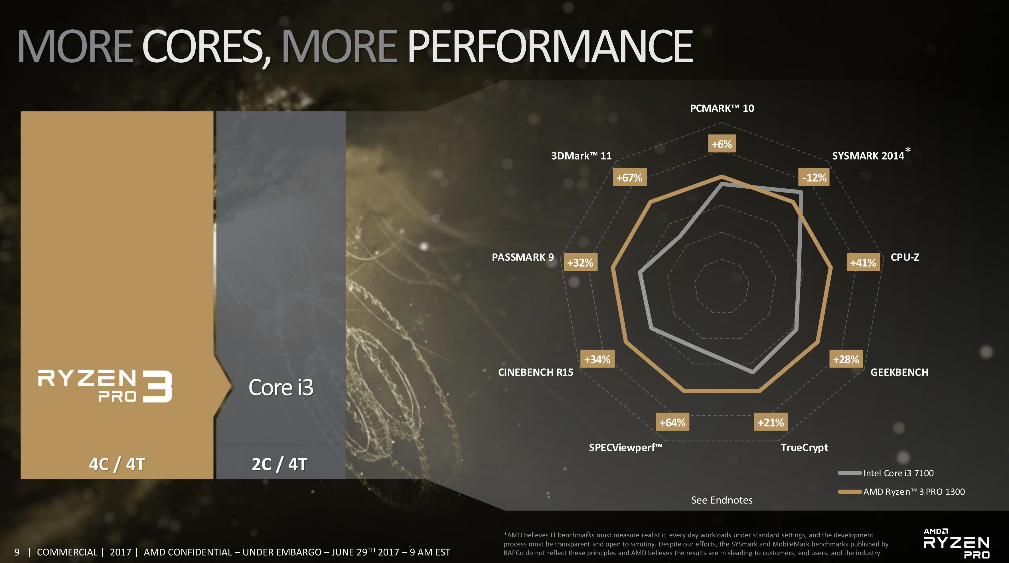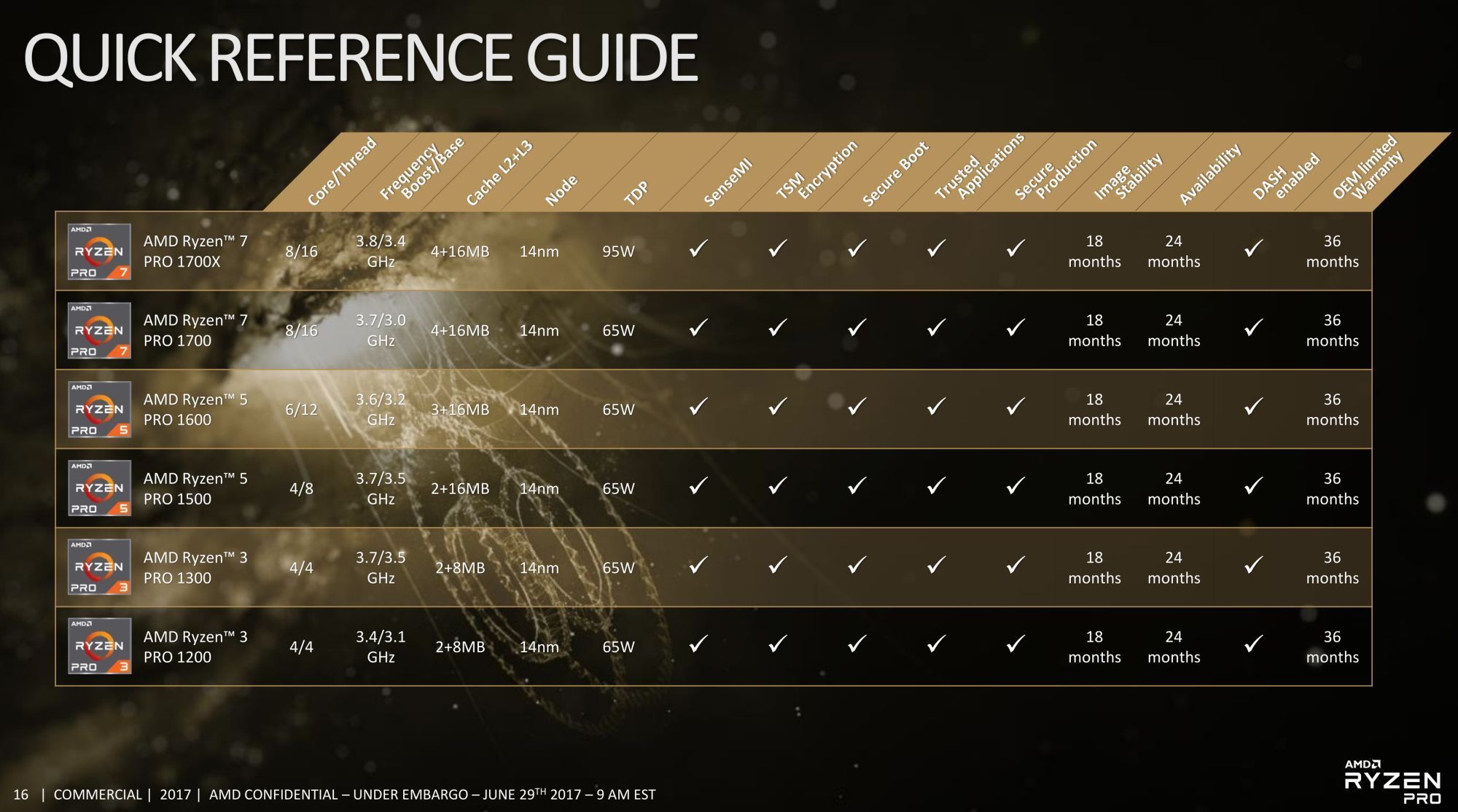 AMD quiere retomar terreno a toda costa en el mercado de procesadores. Luego del lanzamiento de su serie Ryzen para consumidores finales, ahora anuncian su nueva serie de procesadores «Ryzen Pro» enfocados al sector profesional y empresarial que competiran con la serie vPro de Intel. Estos se enfocarán en performance adicional para reforzar aspectos como: