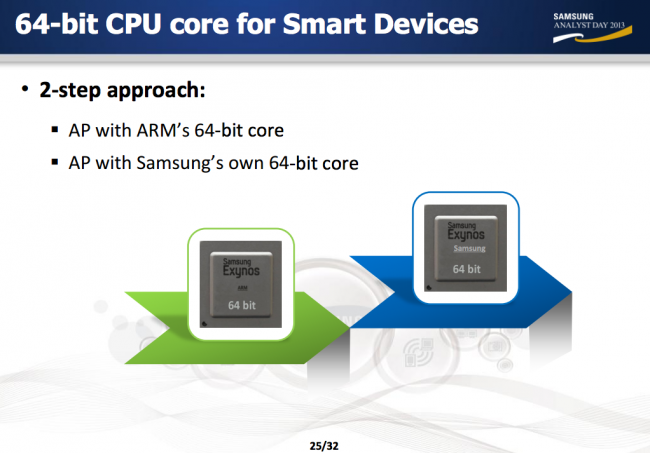 Samsung quiere trabajar en procesadores de 64 bits, para esto podrá usar diseños ARM o tendrá que diseñar sus propios núcleos. Siguiendo los pasos de empresas como Qualcomm o Apple.