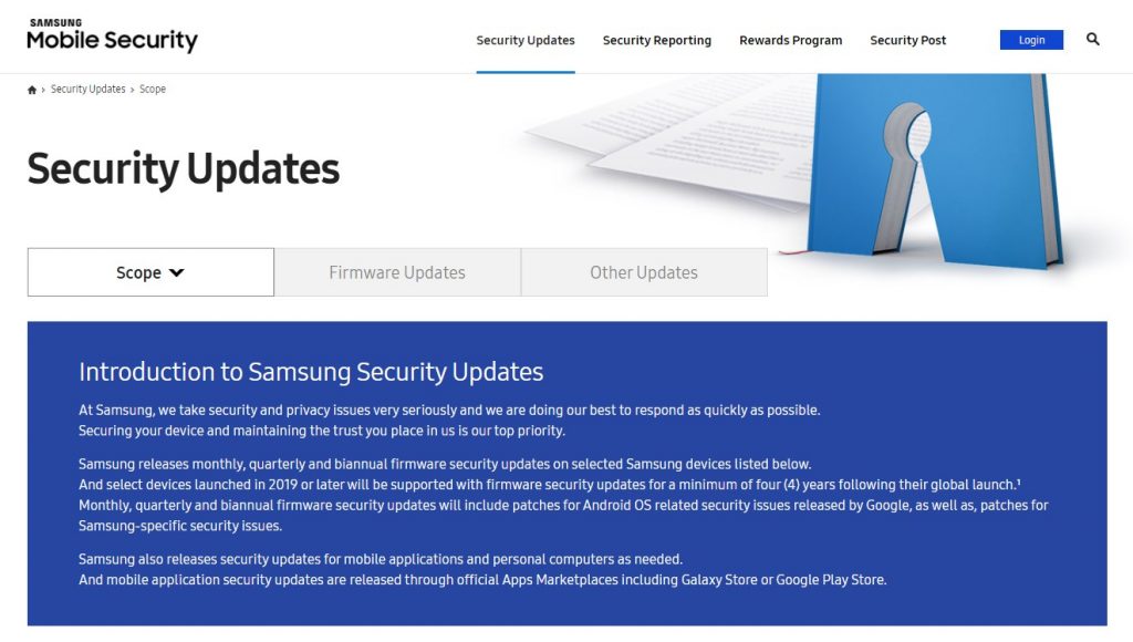 La compañía confirmó que su política de actualizaciones ha cambiado aumentando el soporte para sus equipos. Todos los modelos de Samsung lanzados desde el 2019 en adelante recibirán hasta 4 años de actualizaciones de seguridad.