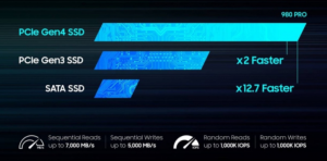 Respecto a las velocidades de lectura y escritura, Samsung dice que podrán alcanzar hasta 7000MB y 5000MB por segundo respectivamente. Asimismo, tienen un rendimiento aleatorio de hasta 1.000.000/1.000.000 IOPS, las cuales mejoran la capacidad de las consolas de la próxima generación.