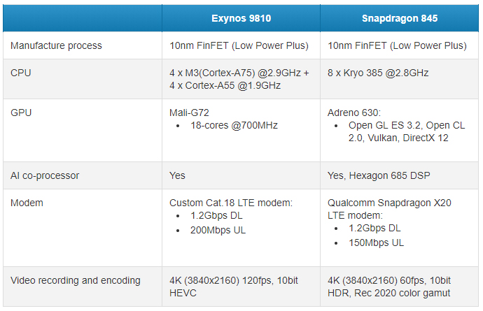 Como ya es conocido, Samsung comercializa el mismo modelo de smartphone pero con otro procesador en distintos continentes. Esto no sería diferente para el Galaxy S9, el acompañante para la otra versión sería el Snapdragon 845, presentado hace poco en Hawai. Este chip no se diferencia demasiado con el Exynos 9810, ambos son la más alta gama de procesadores.