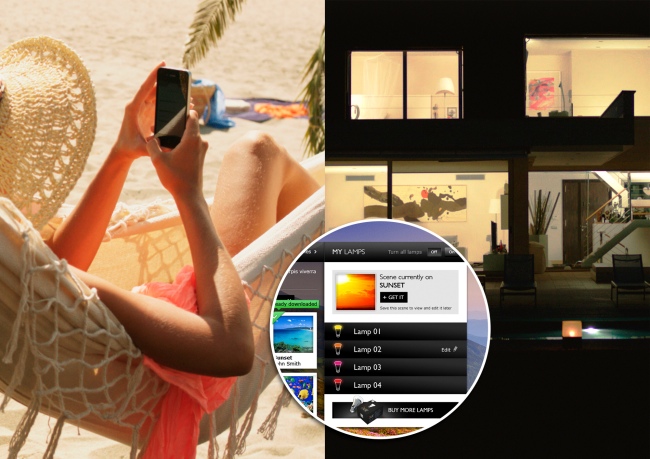 En el 2012, Philips fue el primero en mostrar una solución de este tipo llamado Philips Hue, una bombilla LED de 600 lúmenes (50 W) y que se conecta Internet a través de un dispositivo que se conecta al router para poder controlar la luz y obtener el tono de luz que queramos en cada momento. Este dispositivo viene en un paquete de 3 bombillas y el accesorio para el router de 300 dólares.