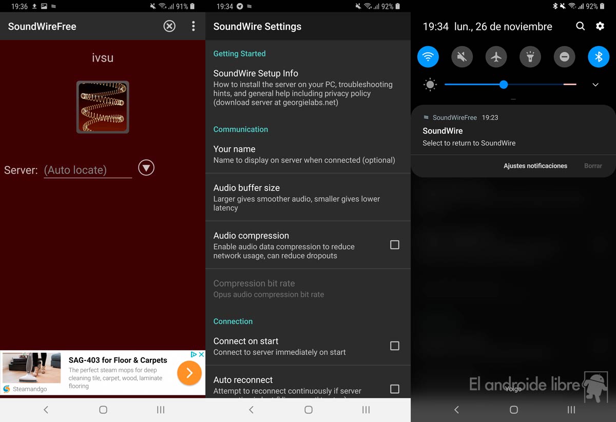 Gracias a SoundWire, la app ideal para este apartado, podremos sincronizar nuestro smartphone para que reproduzca audio en tiempo real. Y lo mejor es que su interface es muy fácil de usar.