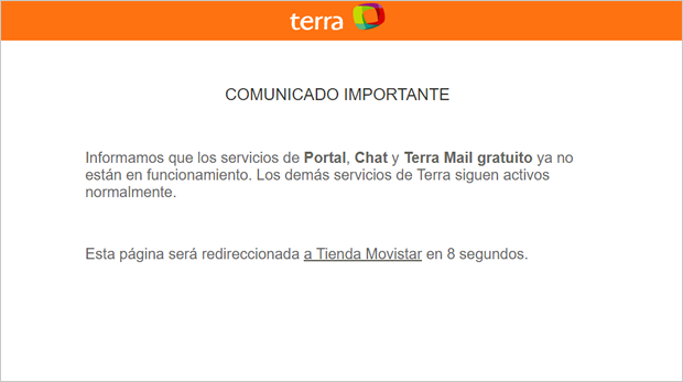 Desafortunadamente, con el boom de las redes sociales, poco a poco el portal fue perdiendo relevancia, así que se decidió darle de baja. El pasado 30 de junio a la medianoche un comunicado final en la página web Terra.com anunció el cierre del portal y ahora redirecciona a los usuarios a la web de la tienda online de Movistar.