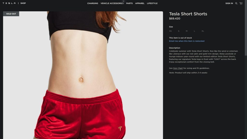 Tesla lanza a la venta “shorts” cortos para mujeres al precio de 69 mil dólares