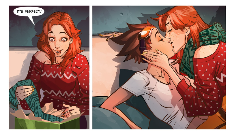 Hace un tiempo, Blizzard comento que introduciría un personaje LGTB a este popular juego de disparos y en ese instante las especulaciones comenzaron a surgir. No fue hasta este comic en donde se revelo el gran misterio, Tracer es el personaje en mención y la trama del comic se centra en conseguirle un regalo a su novia por navidad.