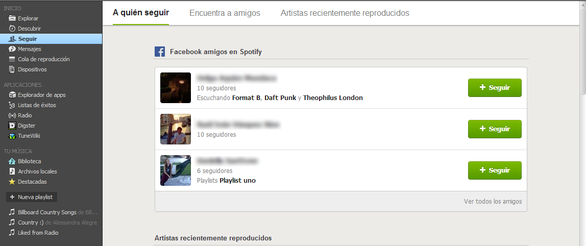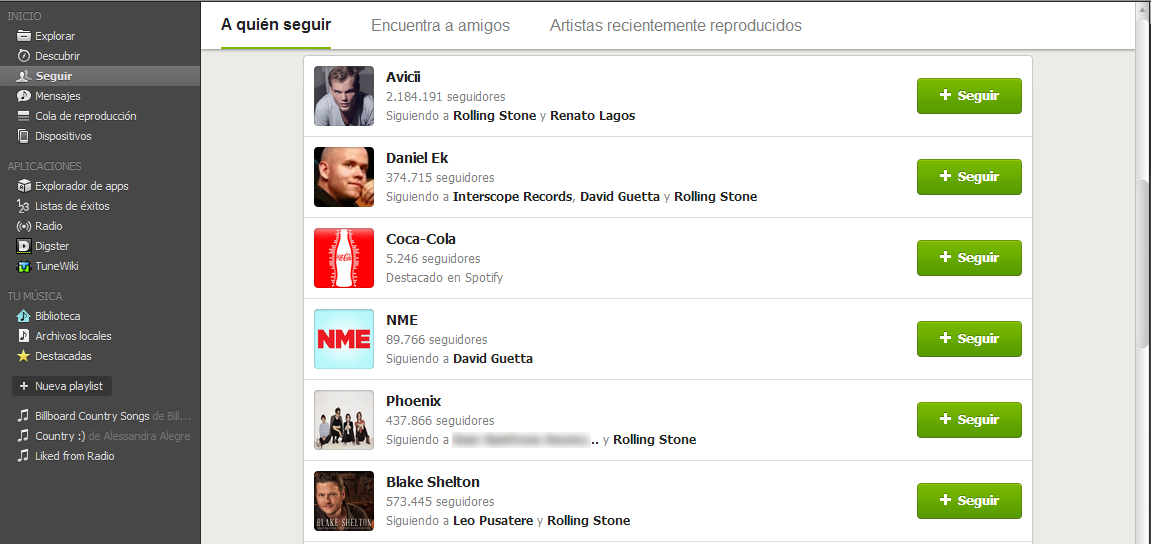 En Spotify puede seguir a las personas que quieras, ya sean tus amigos de Facebook, como artistas reconocidos.