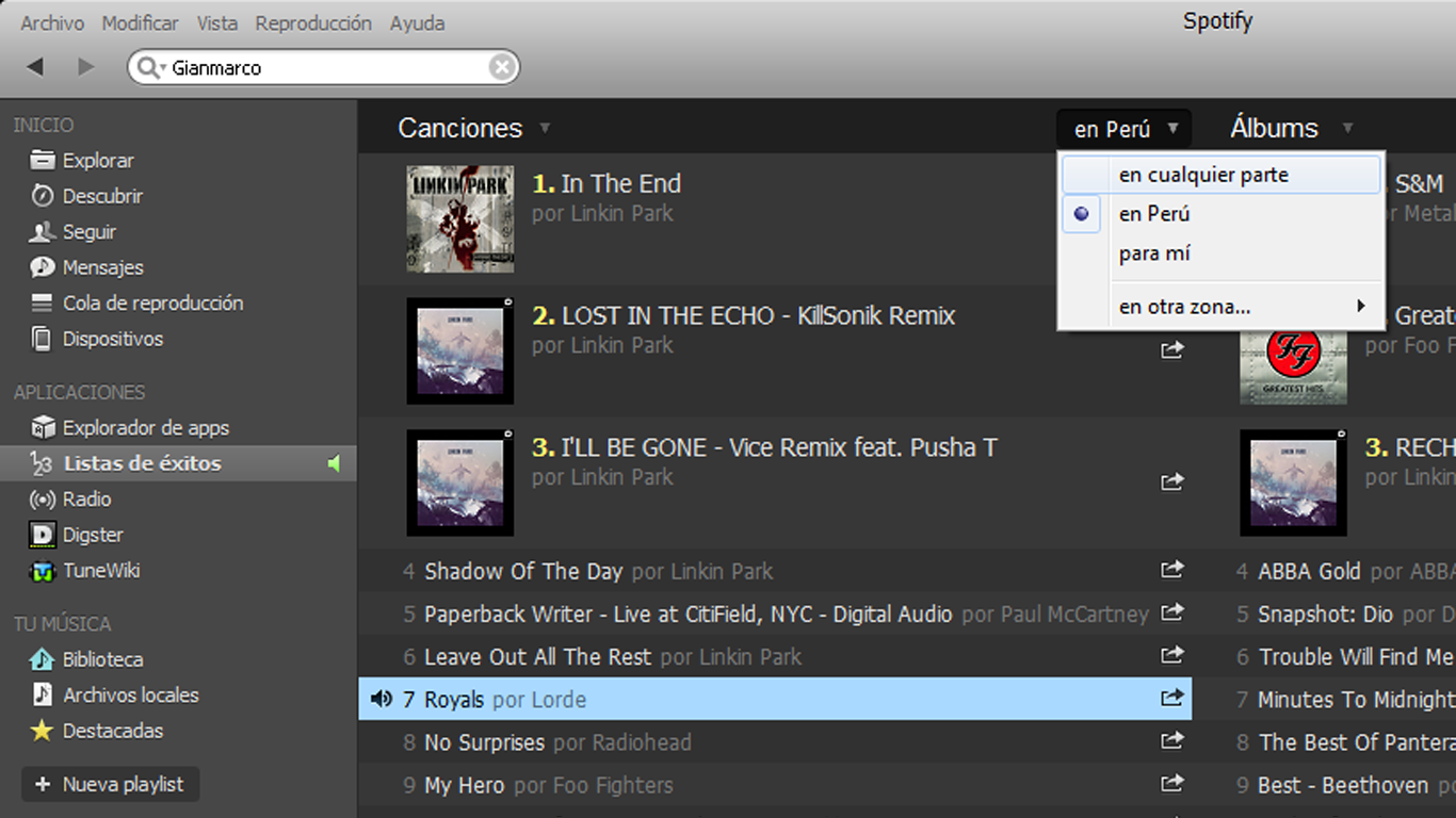 Este es el ranking de canciones y artistas más escuchados en el servicio. También puedes cambiar el país para ver las diversas tendencias en todo el mundo.