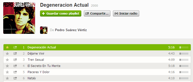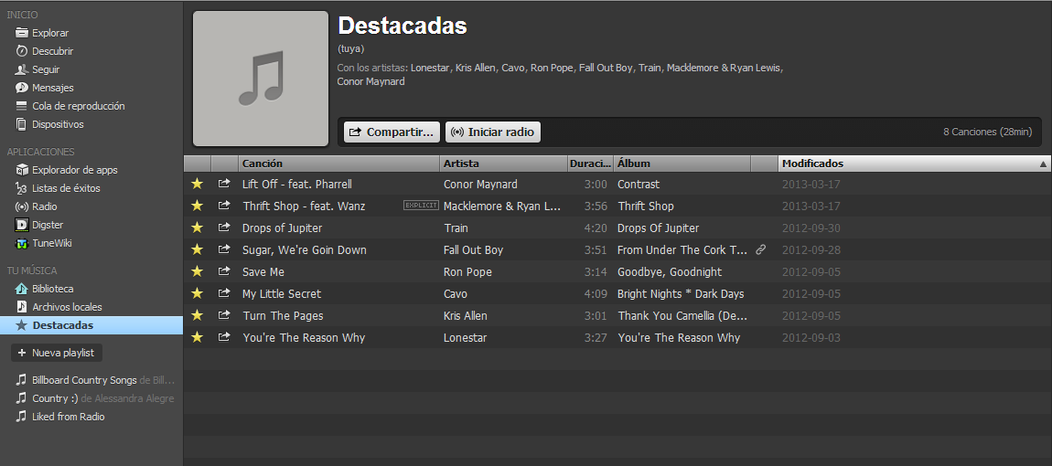 Todas las canciones tienen la posibilidad de que las marques con una estrella para que estas sean consideradas como tus canciones destacadas y luego poder reproducir todas juntas en este menú.