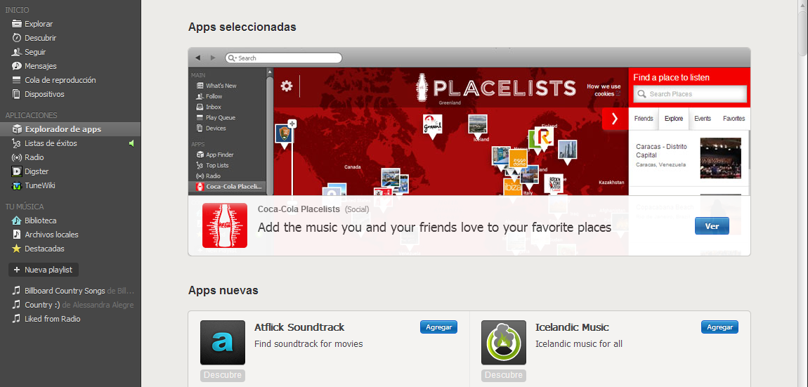 Aquí podrás encontrar diversas aplicaciones desarrolladas para esta plataforma. Existen aplicaciones que te recomiendan o generan listas de reproducción en base a tus artistas favoritos. Una de mis aplicaciones favoritas se llama «TuneWiki» que te muestra la letra de la canción que estas escuchando.