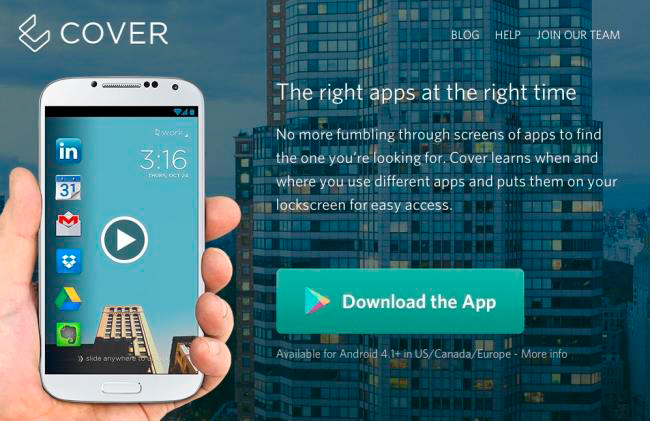 En el blog oficial de Cover se confirma su compra por parte de Twitter. Este lockscreeen (pantalla de bloqueo) es capaz de mostrar las aplicaciones que más necesitamos dependiendo del momento del dìa y el lugar donde nos encontrémos. Además va aprendiendo de qué apps usamos en cada momento por eso que mientras que más se utiliza, más precisa es la aplicación.