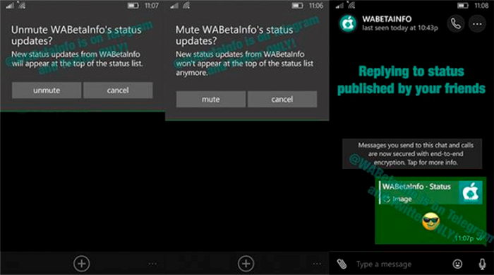 Se ha estado probando una nueva función que nos indicará mediante una alerta cada vez que un contacto actualice su estado en WhatsApp. Esta aplicación no ha sido muy bien recibida por los usuarios ya que muchos lo tildan como molesto. Nosotros podremos desactivar si no queremos que se notifique el cambio, pero no podremos elegir si queremos ser notificados.