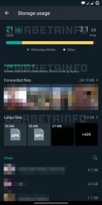 Como podemos ver en la captura superior, de Wabetainfo, hay una nueva y mejorada interfaz. En primer lugar, tenemos una barra que nos dice, de forma visual, cuánto espacio es ocupado según su categoría. Asimismo, en el centro encontramos los archivos compartidos y su respectivo peso. Finalmente, en la parte inferior, podremos observar un listado de todos nuestros chats, comenzando por los más pesados.