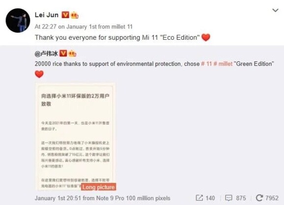 Xiaomi reporta menos del 6% de pedidos totales del Mi 11 en su versión “ecológica” sin cargador