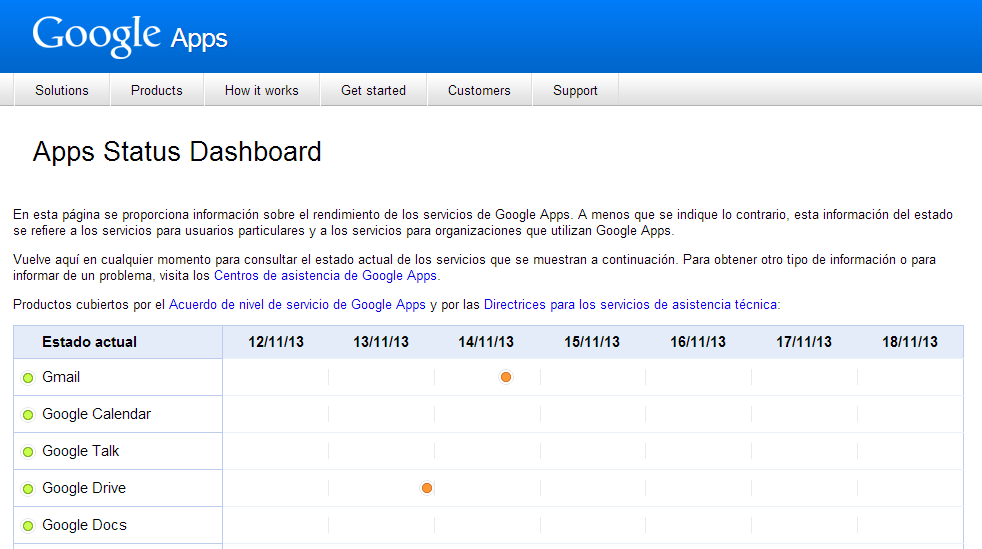 Si usas Gmail y los demás productos de Google puedes ingresar a esta web https://www.google.com/appsstatus