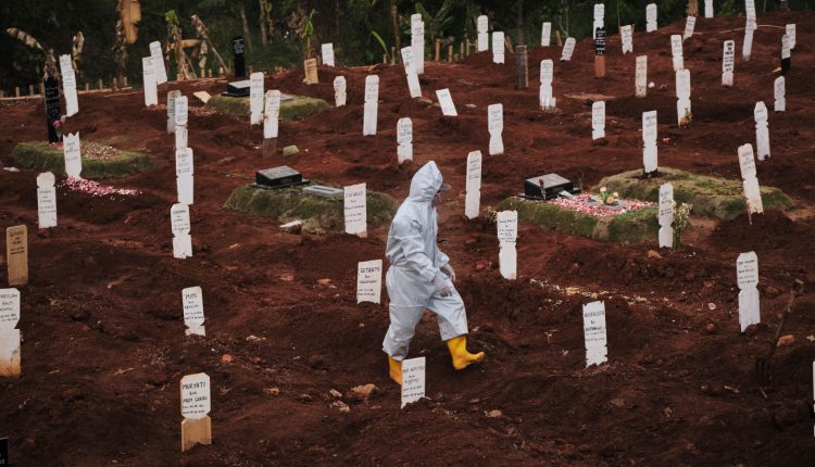 Antimascarillas son obligados a cavar tumbas para víctimas del coronavirus en Indonesia