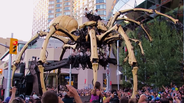 ¿Qué pasaría si te encontraras en la calle a una araña gigante luchando contra un dragón? ¡Seguramente saldrías corriendo! Pues en Canadá pasó todo lo contrario. Más de 750,000 personas se quedaron a ver este show de la compañía teatral francesa La Machine.