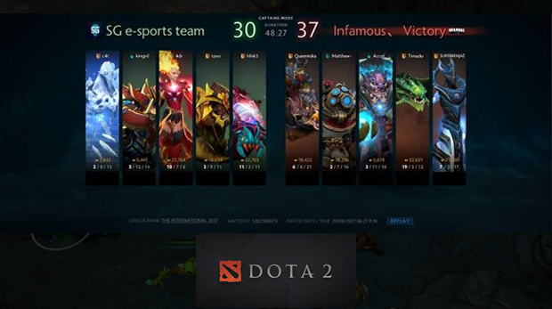 El equipo peruano de eSports Infamous Gaming venció hoy al equipo brasilero SG-eSports por un sorprendente 3-0 en el juego para computadoras Dota 2 y clasificó al torneo The International 2017.